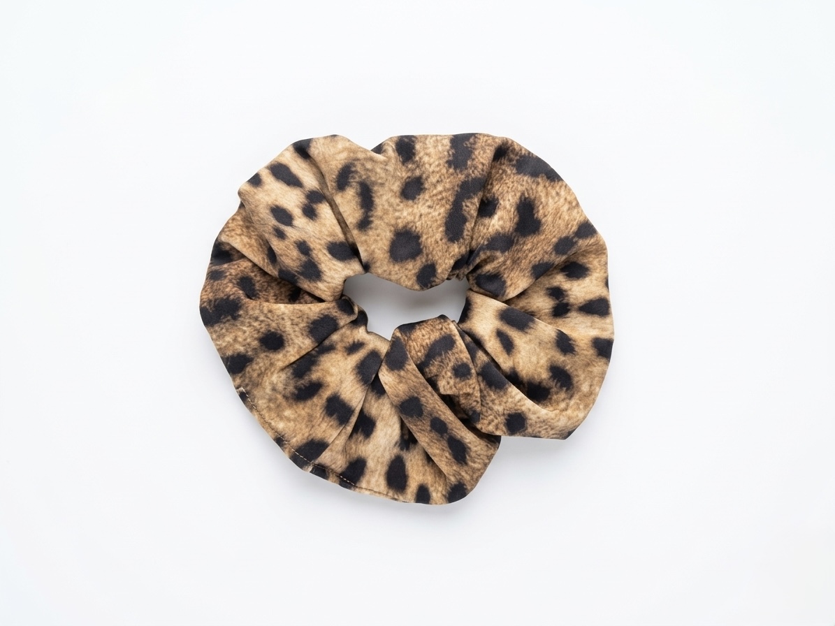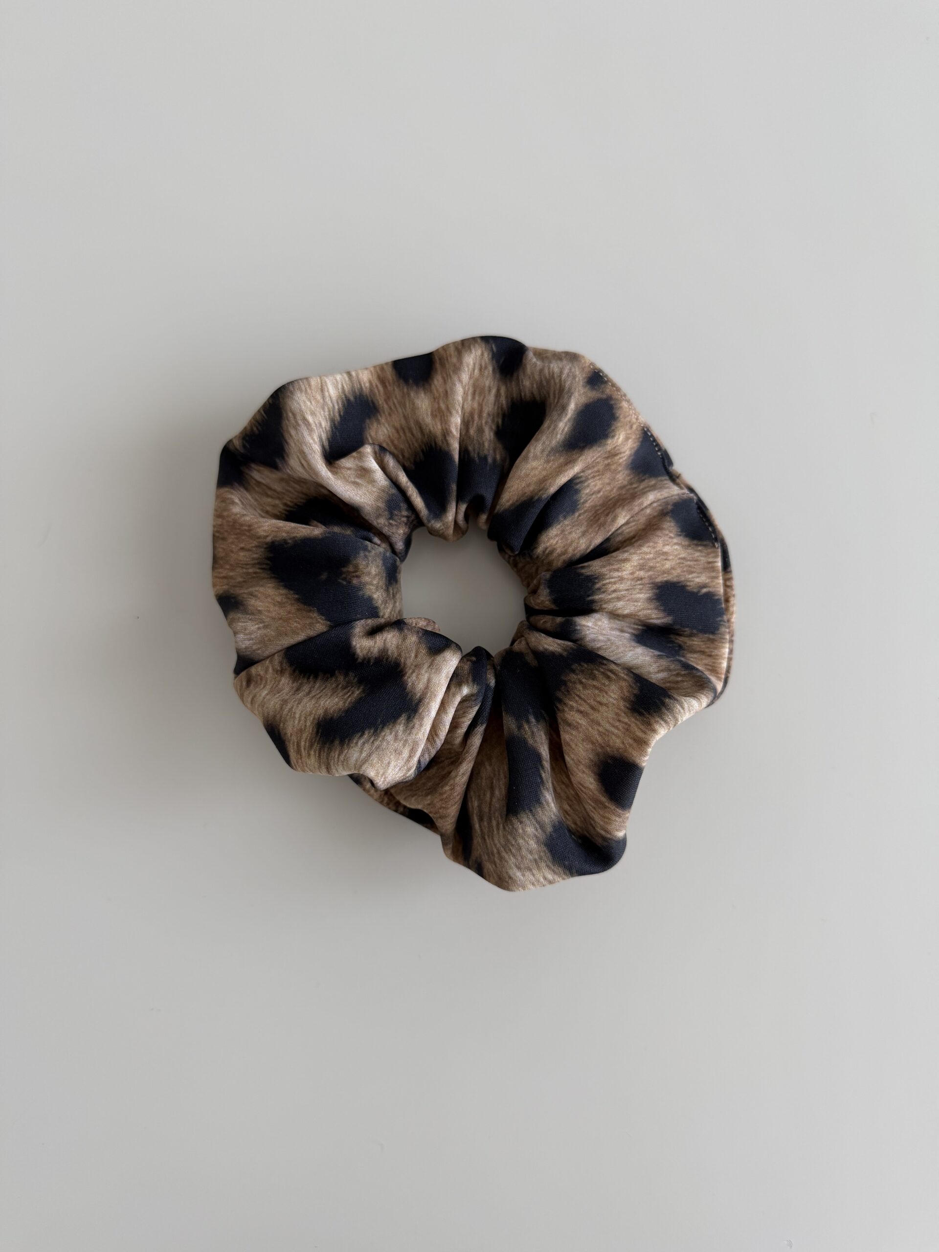 • גומיית סקראנצ’י רחבה העשויה מבגד בגד ים תואם.